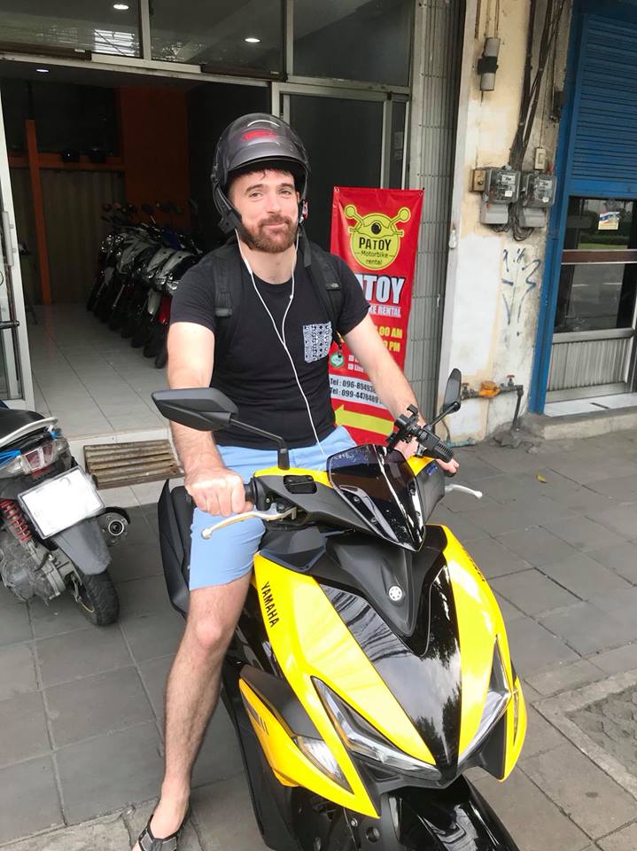 Our happy customer. Thank you John for the return to PATOY Motorbike Rental , enjoy your holiday with New Yamaha Aerox 155cc.
